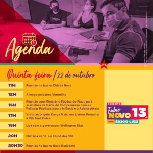 Agenda candidatos a prefeito de Teresina para esta quinta-feira(22)