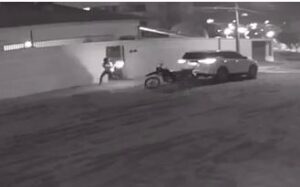 Esta é a imagem do exato momento que o assaltante atira, pela segunda vez, no vereador Samuel Silveira na noite desse domingo(21).