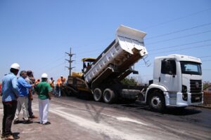 Elmano Férrer fez uma visita às obras do Viaduto do Mercado do Peixe, que está em fase final de execução. O parlamentar, que é candidato a deputado federal, deu uma pausa na agenda política para acompanhar a execução do asfalto na pista superior.