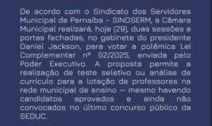 Na cidade, os moradores questionam o desrespeito aos concursados que dedicaram anos de estudo e trabalho; falta de transparência; motivos para esconder do publico a votação e favorecimento político por falta de divulgação dos critérios técnicos.