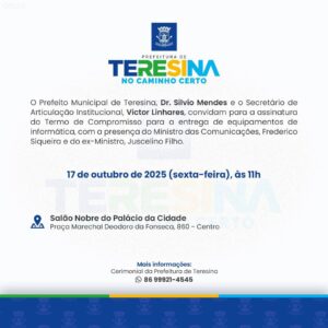 Linhares aponta que essa solenidade é um marco para Teresina e entregará mais qualidade na prestação de serviços para a população. “Essa conquista é um fruto de diálogo e de articulação nossa e um compromisso com o futuro da nossa cidade. Esses elementos vão reforçar a estrutura de tecnologia de Teresina trazendo mais modernidade, agilidade e qualidade nos serviços”, destaca o secretário.