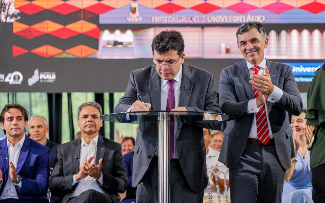 O governador Rafael Fonteles anunciou, nesta segunda-feira (23), um pacote de novos investimentos para a Universidade Estadual do Piauí durante a inauguração dos novos prédios da Faculdade de Direito e da Biblioteca Central, no Campus Torquato Neto, em Teresina. Dentre os anúncios está a construção do primeiro Restaurante Universitário da Uespi, com área de 770,63 m², capacidade para servir até 2 mil refeições por dia e investimento de R$ 2,1 milhões.