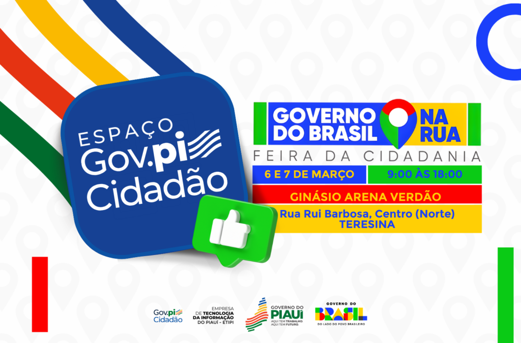O Espaço Gov.pi Cidadão estará presente nesta sexta-feira (6) e sábado (7) na Feira da Cidadania, que será realizada no Ginásio Arena Verdão, das 9h às 18h. A ação integra o programa Governo do Brasil na Rua e é aberta ao público, reunindo diversos serviços gratuitos, aproximando a população dos seus direitos e facilitando o acesso às políticas públicas.